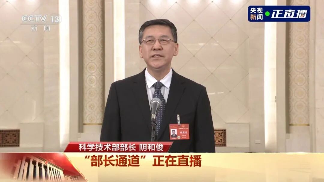 科学技术部部长阴和俊接受采访。