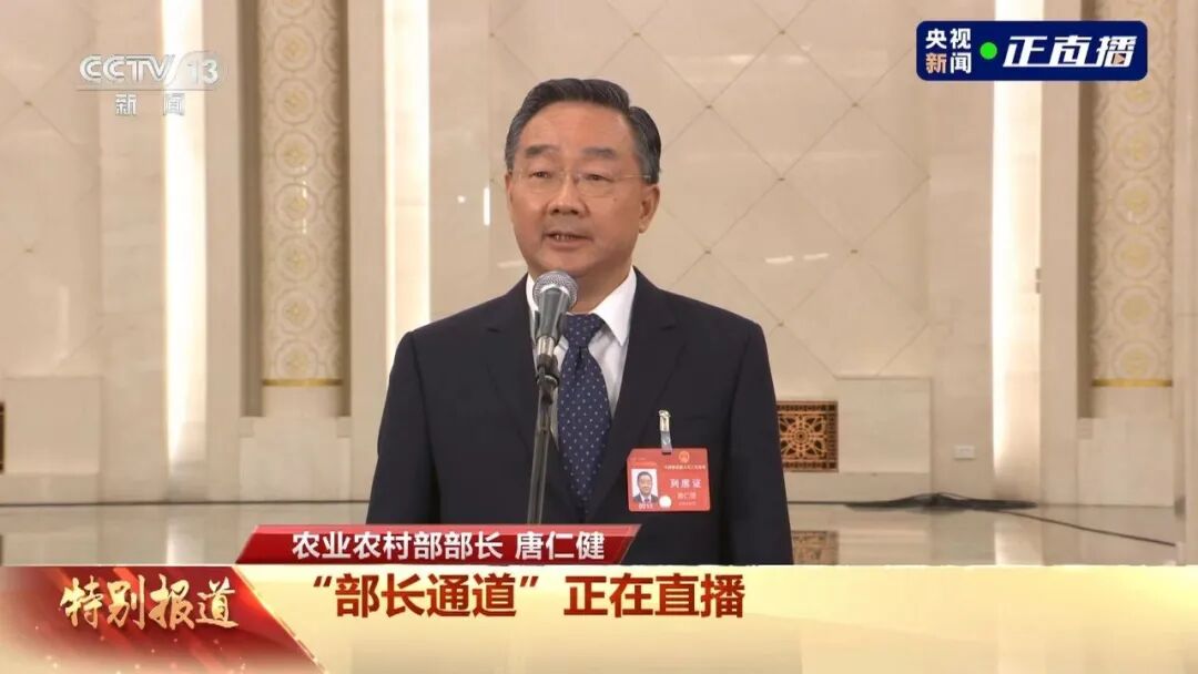 农业农村部部长唐仁健接受采访。
