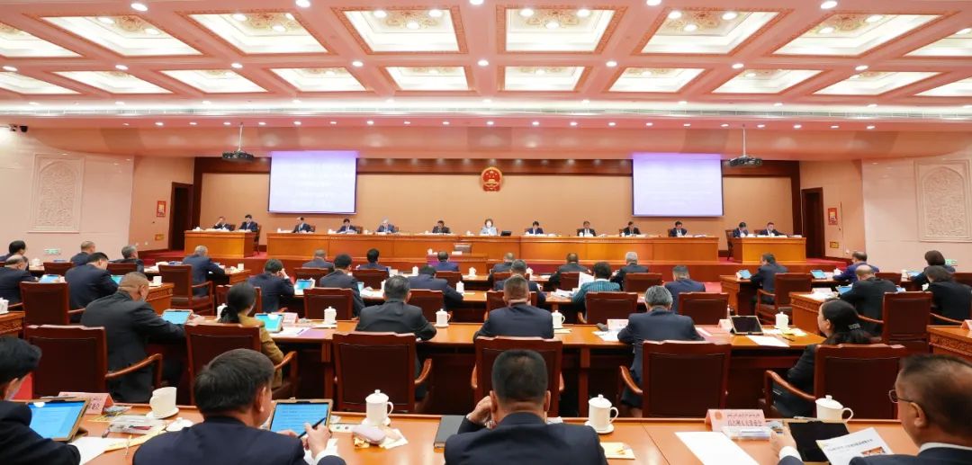 会议通过了自治区十四届人大常委会第五次会议议程,深入学习贯彻习近平总书记在听取自治区党委和政府、兵团工作汇报时的重要讲话精神,学习贯彻自治区党委十届九次全会精神,听取了自治区安全生产条例修订草案、自治区实施《中华人民共和国水法》办法修正草案审议结果的报告;听取了自治区行政执法监督条例草案、自治区社会信用条例草案、自治区气象灾害防御条例草案的说明;听取了自治区人民代表大会代表建议、批评和意见办理规则草案,自治区人大常委会关于白杨市第一届人民代表大会有关问题的决定草案、自治区红十字会条例草案、自治区人大常委会关于深入推进文化润疆的决定草案的说明;听取了自治区人民政府关于2022年度自治区金融企业国有资产管理情况的专项报告、关于自治区农田水利建设管理情况的报告、关于自治区基层社会治理工作情况的报告;听取了自治区人大常委会执法检查组关于检查《中华人民共和国促进科技成果转化法》《自治区实施〈中华人民共和国促进科技成果转化法〉办法》和《自治区去极端化条例》实施情况的报告,自治区人大环境与资源保护委员会关于自治区第十四届人民代表大会第一次会议主席团交付审议的代表提出的议案审议结果的报告;听取了人事任免事项的说明。