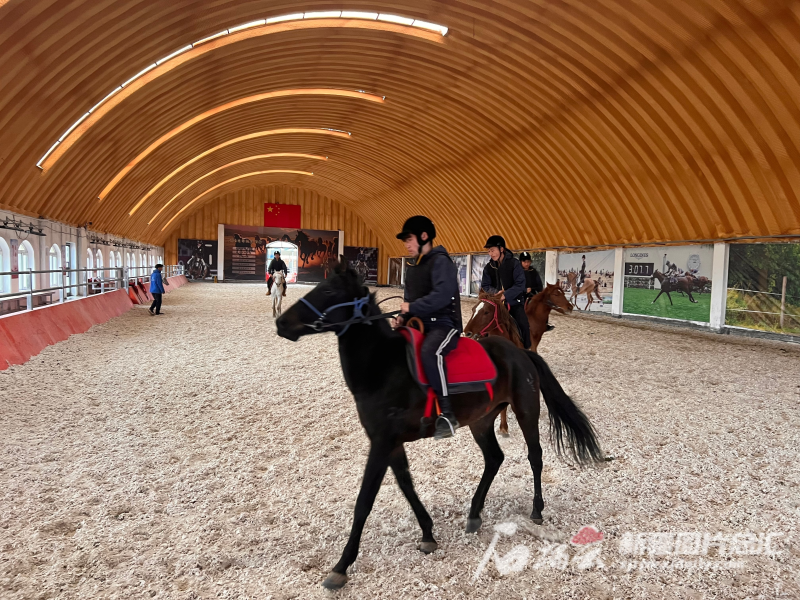 10月30日,阿勒泰市下起了毛毛细雨。记者跟随自治区人大常委会“走基层 看人大”主题采访团来到城郊的金血马场室内训练场,呼图壁中等职业技术学校的5名学生正在进行马术训练。