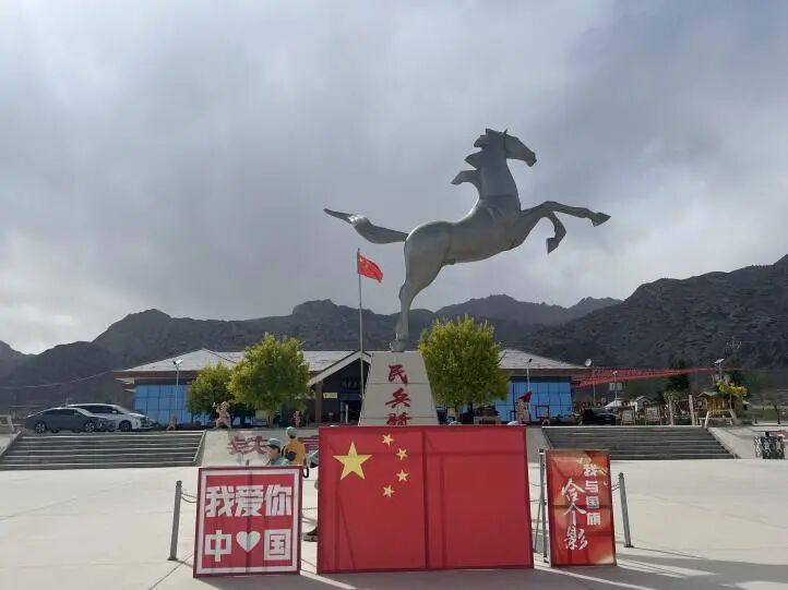 (拜城县老虎台乡的骏马雕像。)