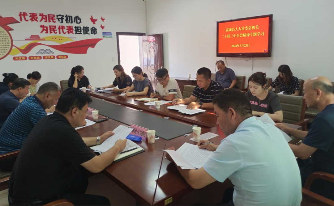 霍城县人大常委会在全县人大干部中迅速掀起学习贯彻全会精神的热潮,推动全会精神在基层队伍落地生根。人大干部一致表示,要把学习宣传贯彻党的二十届三中全会精神,作为当前和今后一个时期的重大政治任务,用全会精神统一思想、引领行动,立足于人大职责抓好落实,扎实推进监督、代表等各项任务和举措,为助力霍城全面深化改革提供支持和保障。要结合“万名代表进万家”“法治伊犁代表行”等主题活动,依托代表联络站、代表小组活动等平台,组织人大代表加强全会精神的学习和领悟,引导人大代表发挥“五员两模范”作用,用通俗易懂的语言,将全会精神宣传到群众中,让群众“喜欢听”、“听得懂”。(霍城县人大 苏热艳供稿)