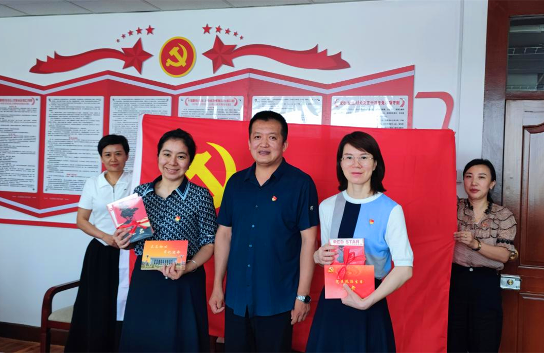 干部培训中心党支部书记刘志远为过“政治生日”的党员同志赠送了“政治生日”贺卡和《习近平用典》《红星照耀中国》《红岩》等红色书籍。